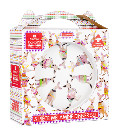 ASHDENE Dinner Set Cooee Kangaroo is a five piece set made from melamine.