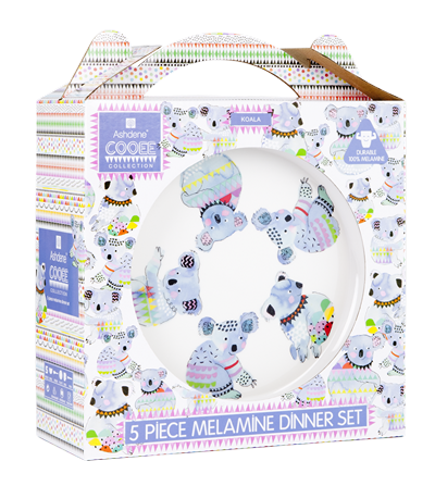 ASHDENE Dinner Set Cooee Koala is a five piece set made from melamine.