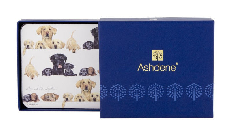 ASHDENE’s Lovable Labs Coasters will delight Labrador dog lovers alike all around the world. Bob Bowdige is a renowned illustrator who has captured the adorable and loving nature of this beautiful breed exclusively for ASHDENE. Golden or black or brown, large dogs and puppies, this design has them all. Spend hours with your friends and families loving this new range from ASHDENE, capturing the adorable and loving nature of man’s best friend. So snuggle up with your favourite Lovable Labs from ASHDENE.
