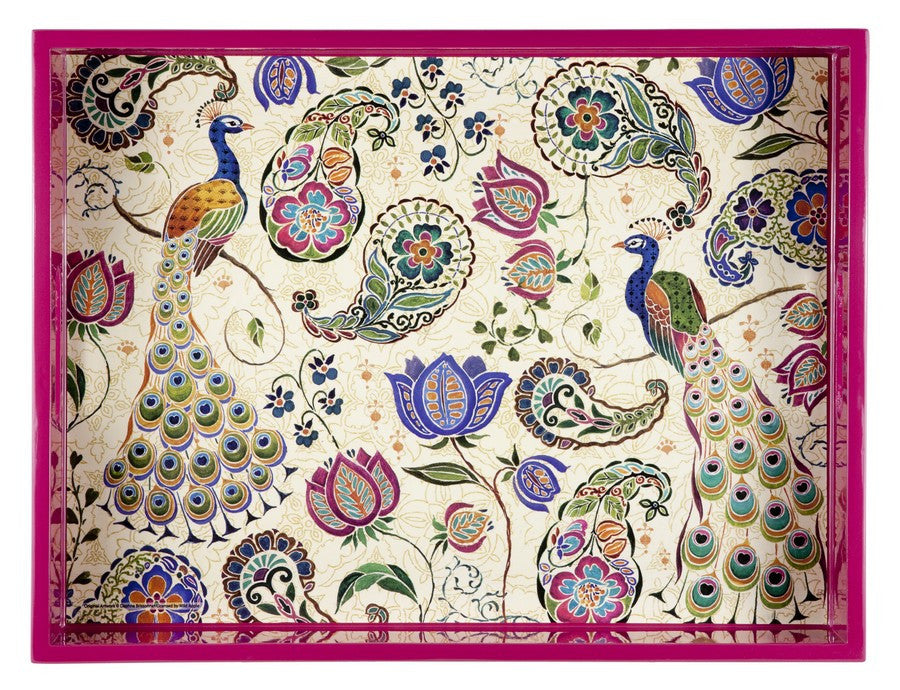 ASHDENE's Peacock Fantasy Tray is made from strong highly lacquered timber.