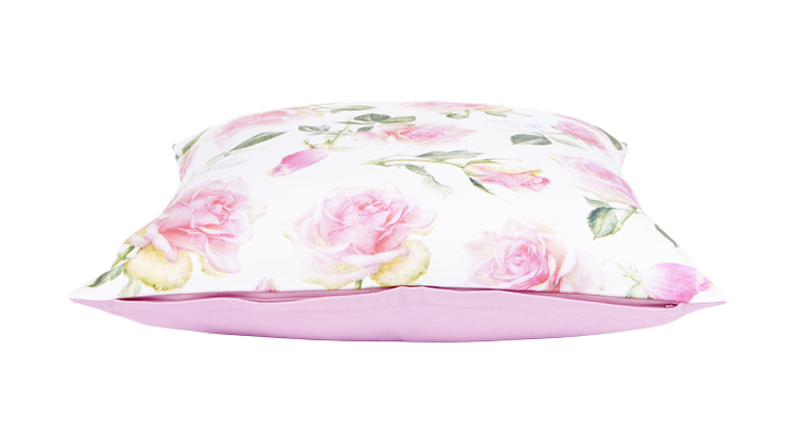 ASHDENE Large Cushion The Rose Enchanted is a luxurious cotton cushion featuring designs by World renowned Botanical Artist - Jenny Phillips of Melbourne, Australia. This design is 100% Botanically correct reproduction of pink Roses, which are the most beautiful ornamental flowers, loved and adored by people around the world on the front and a solid colour on the back (pale pink).