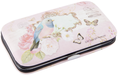 Emblazoned with beautiful artwork, this Bluebird Manicure Kit flips open to reveal its fully fitted out contents.