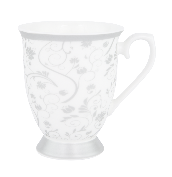 ASHDENE elegant footed mug is presented in the stunning NEW contemporary Genevieve Floral Silver design.