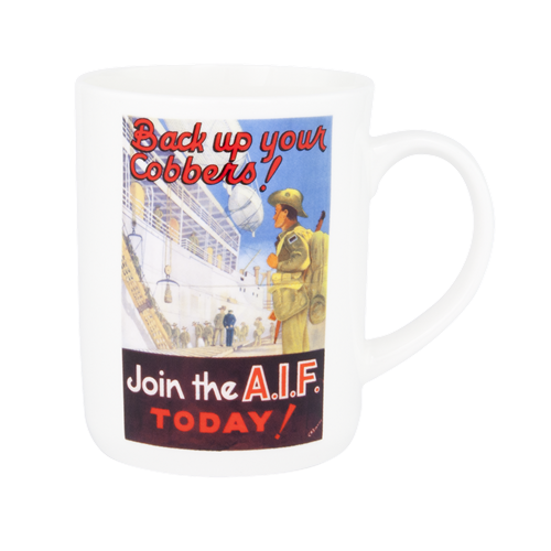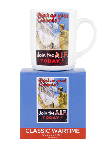 ASHDENE fine bone china mug in the Classic Wartime AIF pattern commemorates the Second World War.