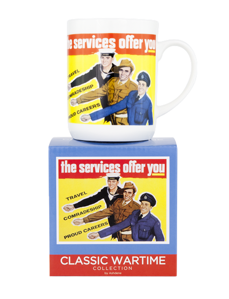 ASHDENE fine bone china mug in the Classic Wartime Servicemen pattern commemorates the Second World War.