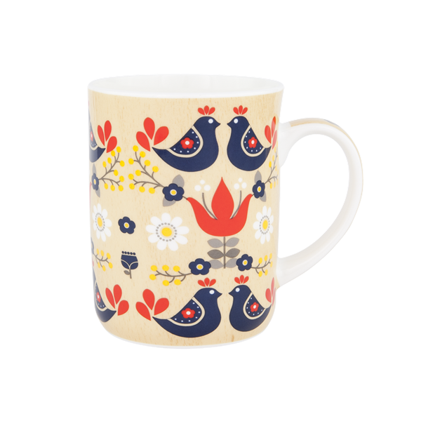 Featuring Scandinavian inspired designs of flowers, fruit and birds. These are just some of the charming motifs that adorn the mugs, in a contemporary pallet of grey, dark blue, red and yellow.