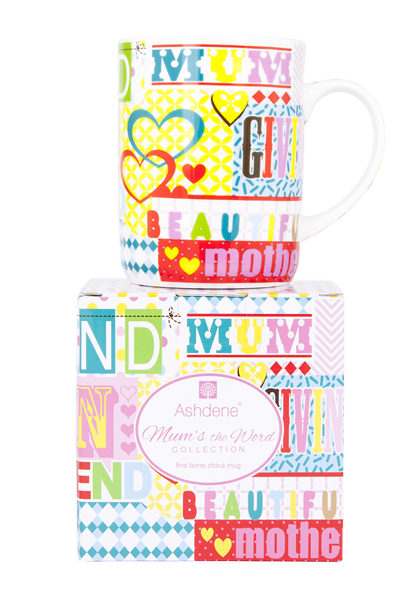 ASHDENE large mug is presented in the stunning NEW contemporary Mum's The Word Graphic Words design.