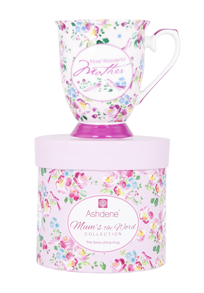 ASHDENE elegant footed mug is presented in the stunning NEW contemporary Mum's The Word Pretty Pink Mother design.