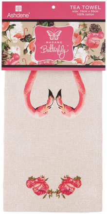 ASHDENE Tea Towel Madame Butterfly Flamingo Rose