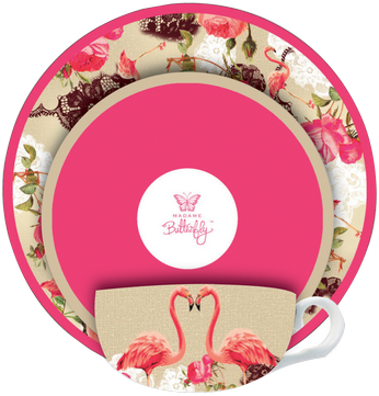 ASHDENE Teacup Saucer and Plate set is part of the BRAND NEW Madame Butterfly Flamingo Rose collection.