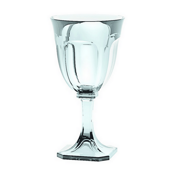 The wine glass flaunts a very refined design, with rounded and sharp features giving it a precious look, also thanks to the thickness and transparency of the acrylic used. Just like the rest of the collection, is perfectly dishwasher safe. Made in Italy.