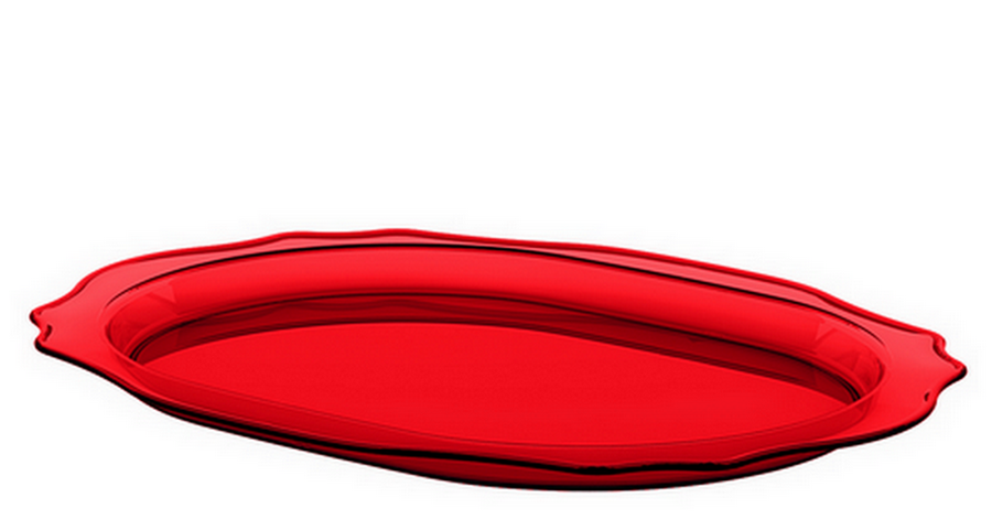 The oval tray picks up on the motif used in the Belle Epoque collection, which, thanks to its neoclassic-inspired forms, the thicknesses of the materials used and the colours chosen, re-creates atmospheres that though lost, had never been forgotten. The tray proposed in various different transparent colours is rigorously Made in Italy to the design by Angeletti Ruzza.